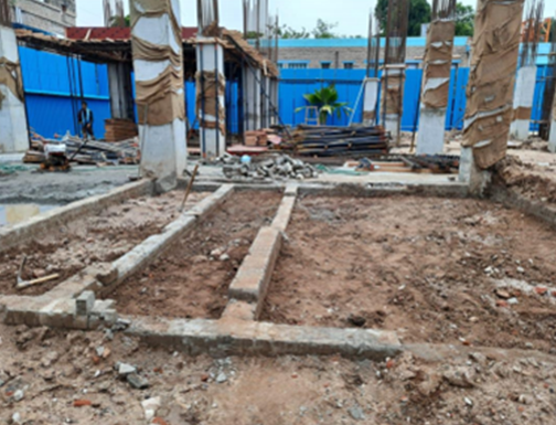 August 2021Grade beam & Column, RCC wall form work & Basement level brick work,Staging work for GF-Roof slab Dt. 04.08.2021